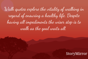 Walk quotes explore the vitality of walking in regard of ensuring a healthy life. Despite having all impediments the wiser step is to walk as the goal waits all.