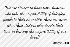 We are blessed to have super humans who take the responsibility of bringing people to their normality, these are none other than doctors who devote their lives in bearing the responsibility of our lives!!