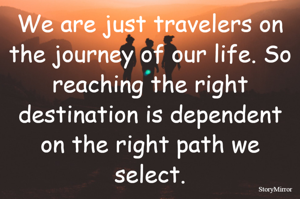 We are just travelers on the journey of our life. So reaching the right destination is dependent on the right path we select.