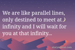 We are like parallel lines, only destined to meet at infinity and I will wait for you at that infinity...