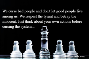 We curse bad people and don't let good people live among us. We respect the tyrant and betray the innocent. Just think about your own actions before cursing the system...