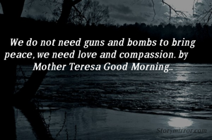 We do not need guns and bombs to bring peace, we need love and compassion. by Mother Teresa Good Morning..