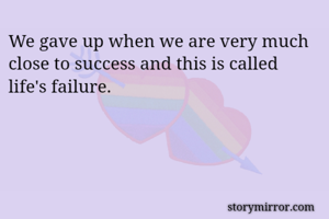We gave up when we are very much close to success and this is called life's failure.