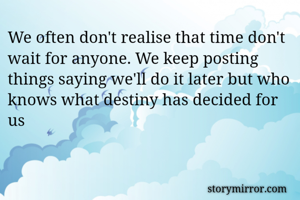 We often don't realise that time don't wait for anyone. We keep posting things saying we'll do it later but who knows what destiny has decided for us