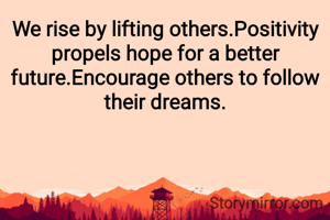We rise by lifting others.Positivity propels hope for a better future.Encourage others to follow their dreams.