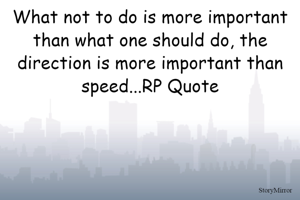 What not to do is more important than what one should do, the direction is more important than speed...RP Quote