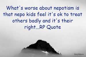 What's worse about nepotism is that nepo kids feel it's ok to treat others badly and it's their right...RP Quote