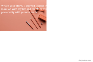 What's your story? I learned lessons from every mistake, let it go and move on with my life and that's the mirror of my life revealed in my personality with genuine smile.