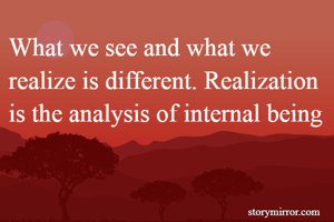 What we see and what we realize is different. Realization is the analysis of internal being