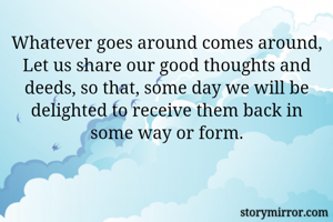 Whatever goes around comes around, Let us share our good thoughts and deeds, so that, some day we will be delighted to receive them back in some way or form.