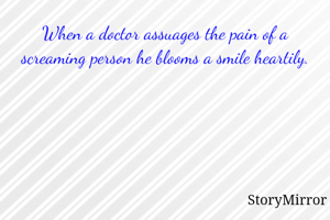 When a doctor assuages the pain of a screaming person he blooms a smile heartily.