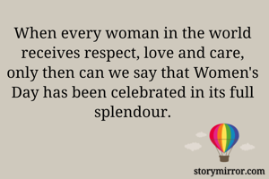 When every woman in the world receives respect, love and care, only then can we say that Women's Day has been celebrated in its full splendour.