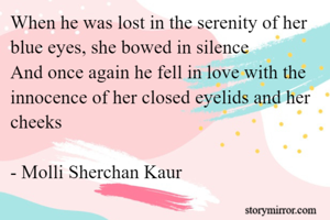 When he was lost in the serenity of her blue eyes, she bowed in silence And once again he fell in love with the innocence of her closed eyelids and her cheeks - Molli Sherchan Kaur