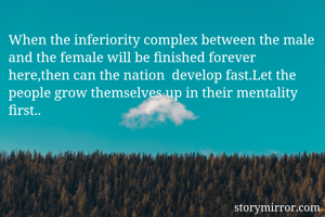 When the inferiority complex between the male and the female will be finished forever here,then can the nation develop fast.Let the people grow themselves up in their mentality first..
