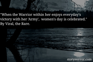 "When the Warrior within her enjoys everyday's victory with her 'Army', women's day is celebrated." By Viral, the Rare.