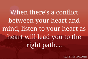When there's a conflict between your heart and mind, listen to your heart as heart will lead you to the right path....