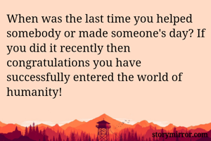 When was the last time you helped somebody or made someone's day? If you did it recently then congratulations you have successfully entered the world of humanity!
