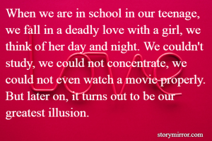 When we are in school in our teenage, we fall in a deadly love with a girl, we think of her day and night. We couldn't study, we could not concentrate, we could not even watch a movie properly. But later on, it turns out to be our greatest illusion.