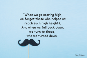'When we go soaring high, we forget those who helped us reach such high heights. And when we fall back down, we turn to those, who we turned down.'