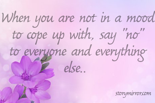 When you are not in a mood to cope up with, say "no" to everyone and everything else..