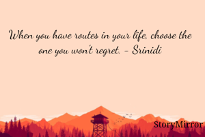 When you have routes in your life, choose the one you won't regret. - Srinidi