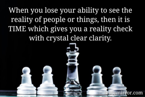 When you lose your ability to see the reality of people or things, then it is TIME which gives you a reality check with crystal clear clarity.