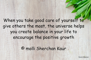 When you take good care of yourself to give others the most, the universe helps you create balance in your life to encourage the positive growth
