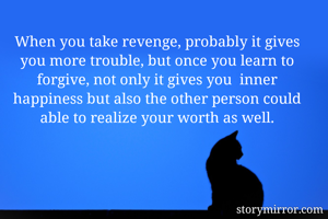 When you take revenge, probably it gives you more trouble, but once you learn to forgive, not only it gives you inner happiness but also the other person could able to realize your worth as well.
