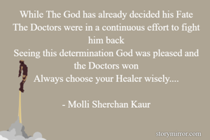 While The God has already decided his Fate The Doctors were in a continuous effort to fight him back Seeing this determination God was pleased and the Doctors won Always choose your Healer wisely.... - Molli Sherchan Kaur
