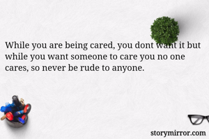 While you are being cared, you dont want it but while you want someone to care you no one cares, so never be rude to anyone.