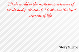 Whole world is the mysterious reservoir of deceits and pretention but books are the loyal segment of life.