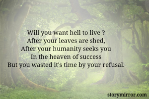 Will you want hell to live ? After your leaves are shed, After your humanity seeks you In the heaven of success But you wasted it's time by your refusal.