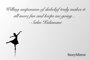 Willing suspension of disbelief truly makes it all more fun and keeps me going... - Salai Kulamani