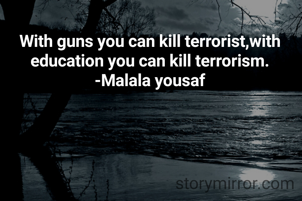 With guns you can kill terrorist,with education you can kill terrorism. -Malala yousaf