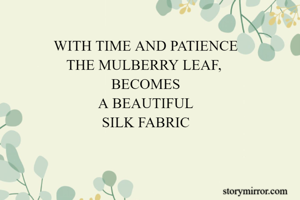 WITH TIME AND PATIENCE THE MULBERRY LEAF, BECOMES A BEAUTIFUL SILK FABRIC