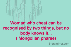 Woman who cheat can be recognised by two things, but no body knows it... ( Mongolian pharse)
