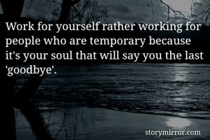 Work for yourself rather working for people who are temporary because it's your soul that will say you the last 'goodbye'.