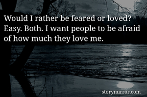 Would I rather be feared or loved? Easy. Both. I want people to be afraid of how much they love me.
