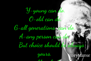 Y-young can do. O-old can do. G-all generations can do. A-any person can do. But choice should be always yours. -Aliya firdous