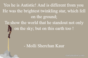 Yes he is Autistic! And is different from you He was the brightest twinkling star, which fell on the ground; To show the world that he standout not only on the sky; but on this earth too ! - Molli Sherchan Kaur