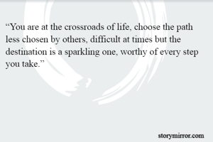 “You are at the crossroads of life, choose the path less chosen by others, difficult at times but the destination is a sparkling one, worthy of every step you take.”