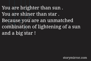 You are brighter than sun . You are shiner than star . Because you are an unmatched combination of lightening of a sun and a big star !
