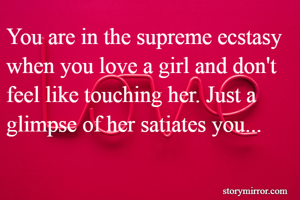 You are in the supreme ecstasy when you love a girl and don't feel like touching her. Just a glimpse of her satiates you...