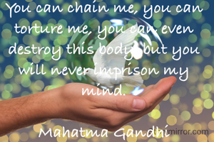 You can chain me, you can torture me, you can even destroy this body, but you will never imprison my mind. Mahatma Gandhi