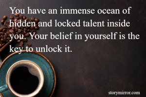 You have an immense ocean of hidden and locked talent inside you. Your belief in yourself is the key to unlock it.
