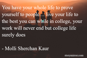 You have your whole life to prove yourself to people… live your life to the best you can while in college, your work will never end but college life surely does - Molli Sherchan Kaur
