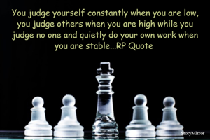 You judge yourself constantly when you are low, you judge others when you are high while you judge no one and quietly do your own work when you are stable...RP Quote