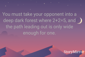 You must take your opponent into a deep dark forest where 2+2=5, and the path leading out is only wide enough for one.