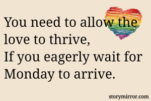 You need to allow the love to thrive, If you eagerly wait for Monday to arrive.