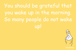 You should be grateful that you wake up in the morning. So many people do not wake up!
